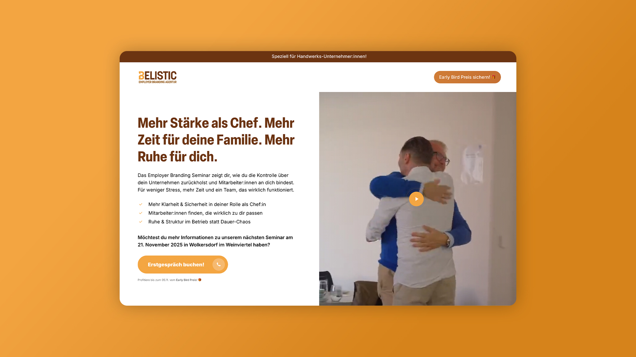 BELISTIC wollte ihr Employer Branding Seminar gezielt online bewerben und suchte nach einer Möglichkeit, die Zielgruppe emotional abzuholen und zu qualifizierten Leads zu konvertieren.